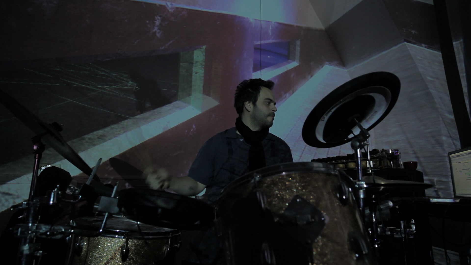 Snippet of Arrytmia, with Victor Morales manipulating video games and me playing drums…
